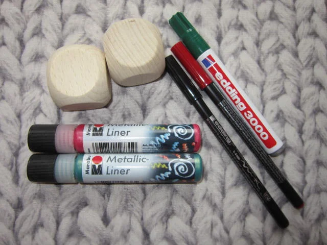 2 beliebig große 6-seitige Blanko-Würfel, entweder gekauft oder selbst gesägt